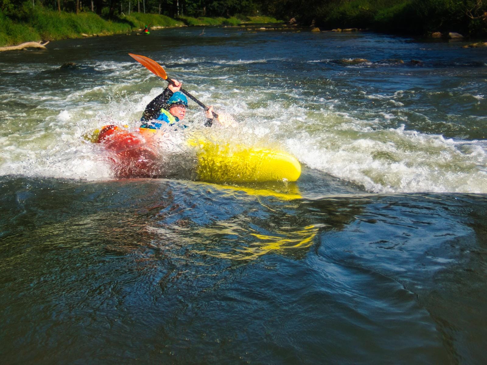 Sicheres Aussteigen bei Kenterung, Kehrwasserein- und Ausfahren, aber auch das Beurteilen einer Gefahrenstelle sind nur einige der Dinge die hier wichtig sind.